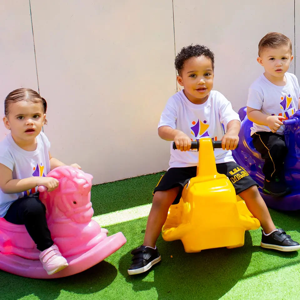 Oferecemos uma educação diferente das escolas convencionais, com maior ênfase em brincadeiras, criatividade, interação social e emocional, aprendizado ao ar livre com infinitas possibilidades de brincadeiras e aventuras. Oferecemos materiais que potencializam o desenvolvimento físico das crianças, incluindo a motricidade fina e grossa.
